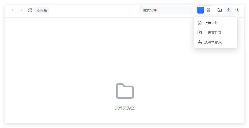 保险箱功能和极空间的很类似,创建一个保险柜密码后,在这个页面可以单独上传文件、文件夹,也支持从现有的 NAS 数据里移入。