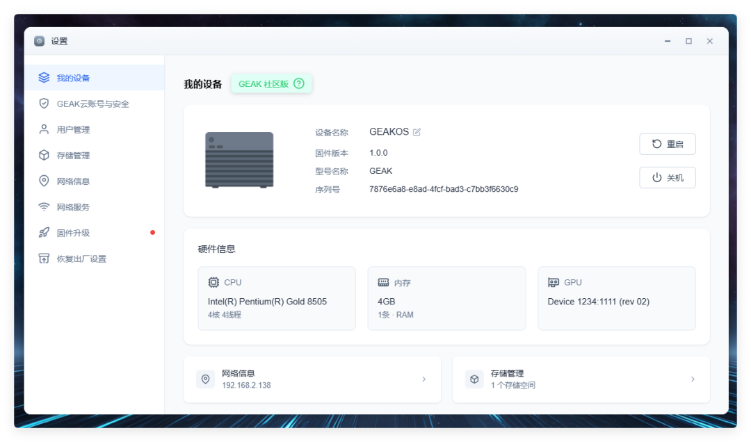 目前 GEAK NAS 分为社区版、家庭版(功能更少)、定制版。我看了一下厂商:上海有芒智能科技有限公司,是一家 2024 年成立的新公司,希望 GEAK OS 可以越做越好吧。