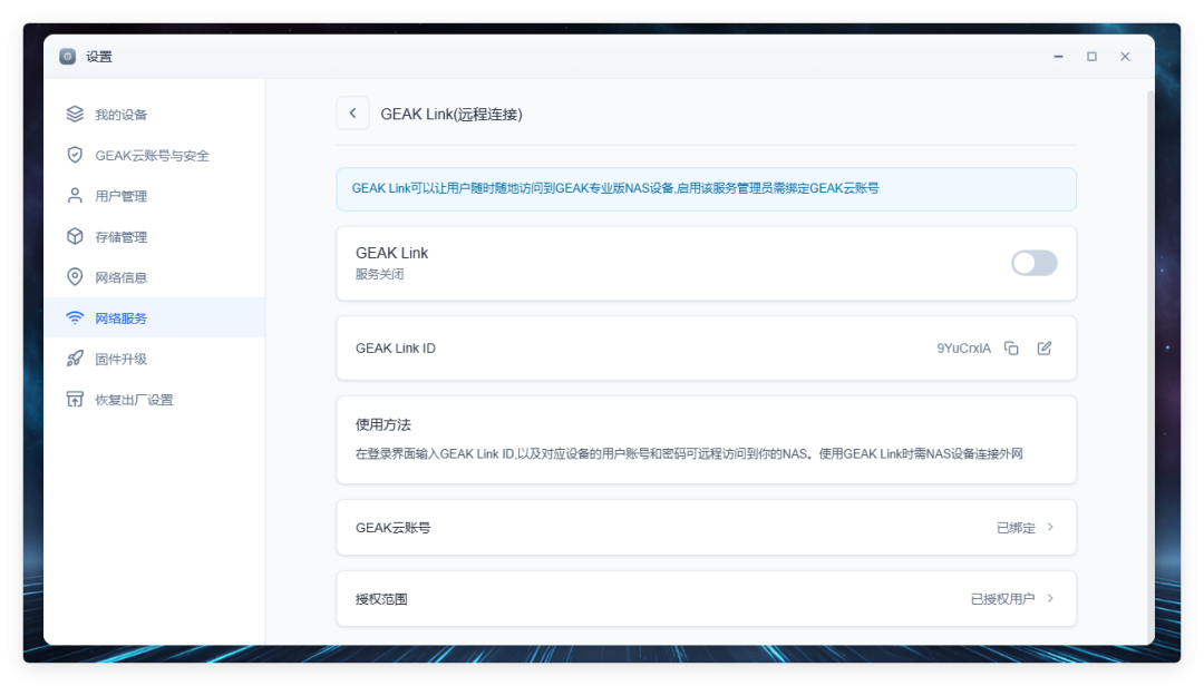 注册以后,可以自定义 GEAK LINK ID 来创建远程连接。