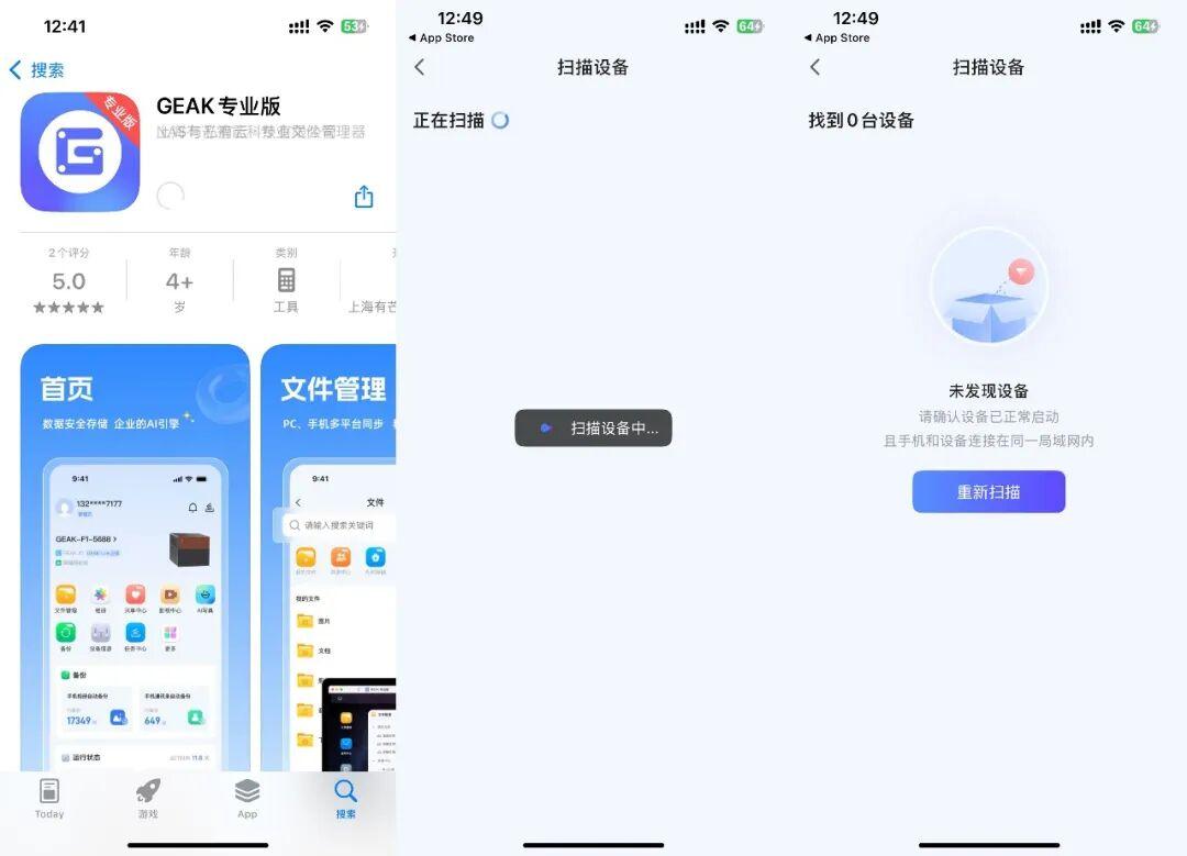 手机端测试了一下局域网扫描,发现扫描不到设备。但是输入 IP 和 GEAK ID 是没问题的,大概率虚拟机的锅?!