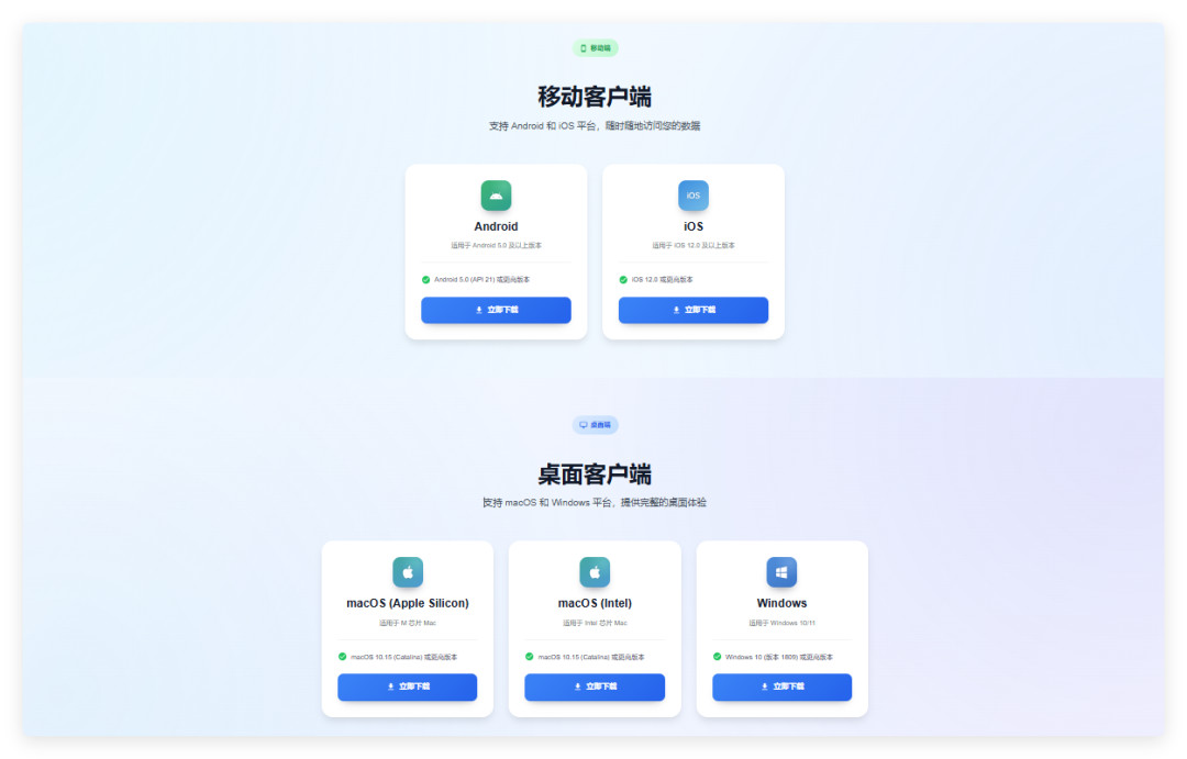 虽然是新系统,但是跨平台的支持还是给的很足,苹果、安卓、mac、windows 都有对应的客户端。