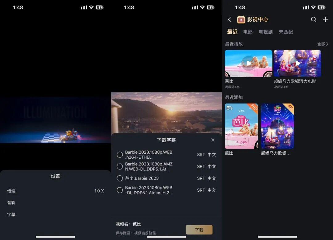 目前播放只支持手机端,尝试了一下杜比啥的,都没大问题。播放器里不能转码,但是支持倍速、音轨选择,并且内置了字幕下载和选择功能。