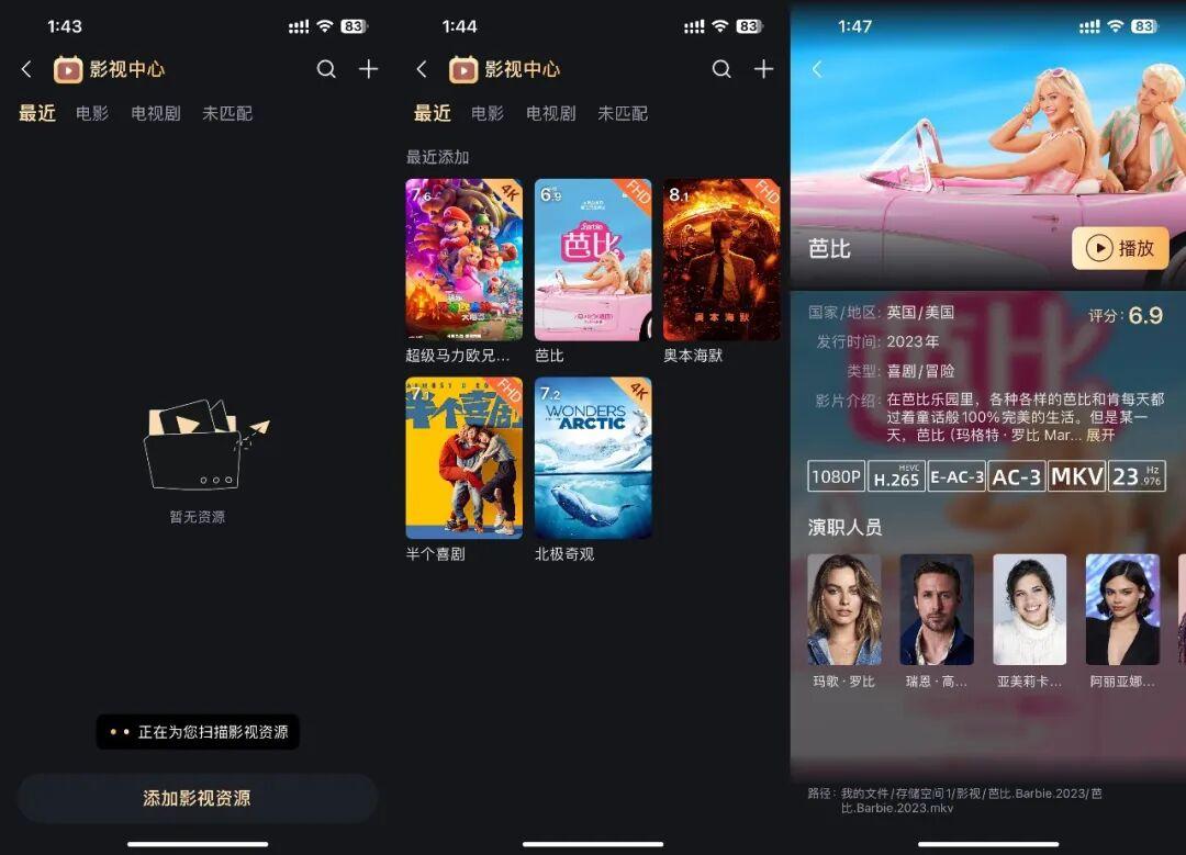 影视中心需要手动添加路径,目前还不能区分媒体库,都是放在一个大杂烩里。