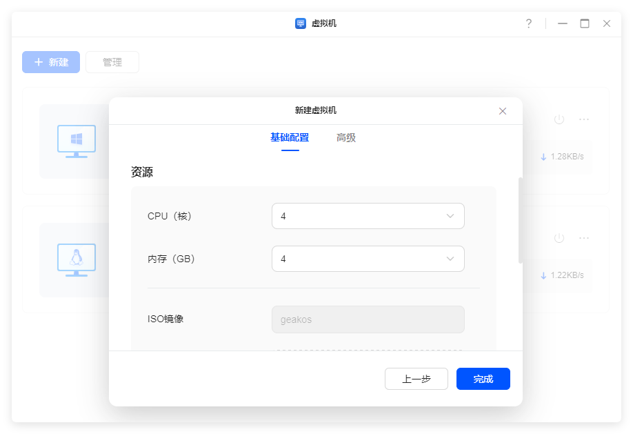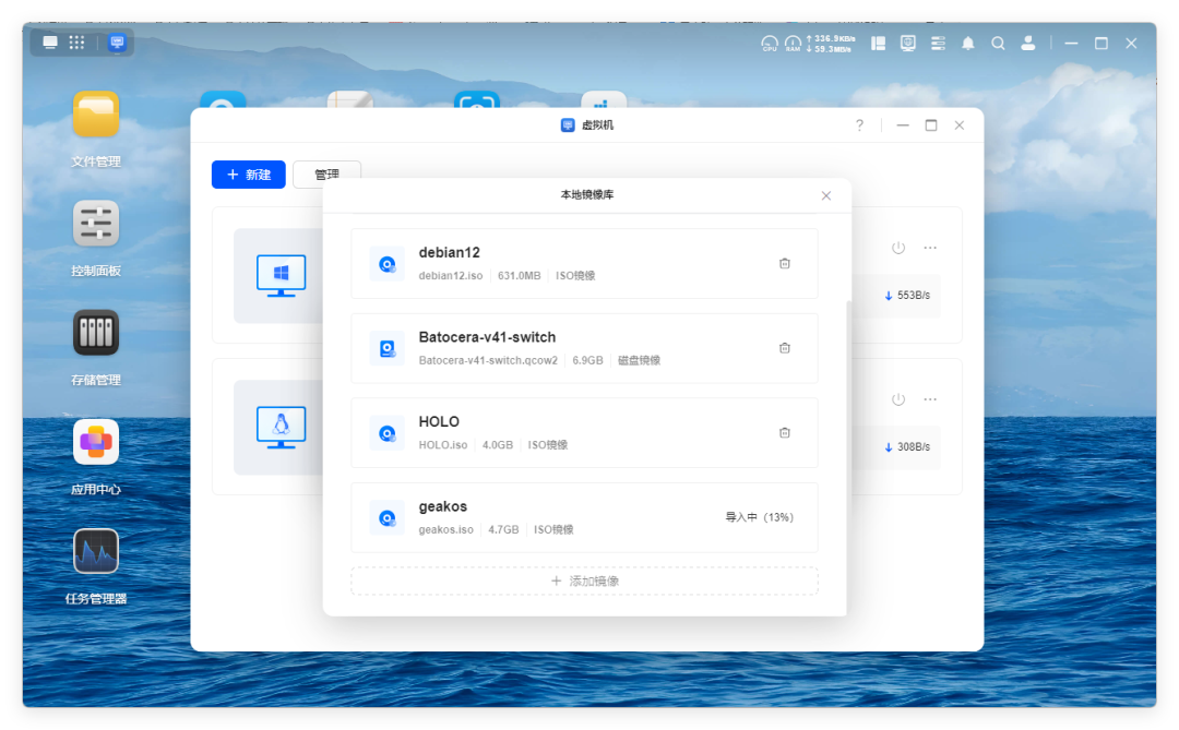 这里咋们用虚拟机的方法,部署一下 GEAKOS 的 ISO 镜像看看,到底是怎么个事儿。办公室用了绿联私有云,直接打开虚拟机,把电脑上的镜像上传上去。
