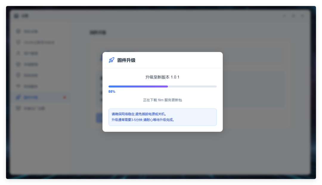 目前系统是 v1.0.0 版本,在左下角的固件升级里我发现 2月25日已经发布了 v1.0.1 的固件更新包。